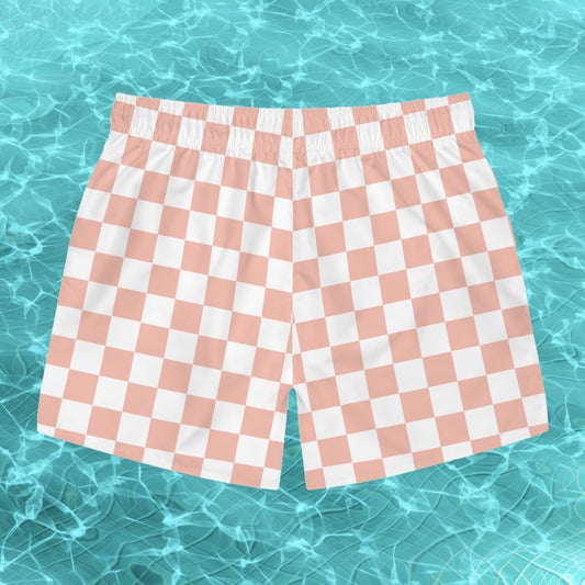 Coral Checkerboard Swim Trunks