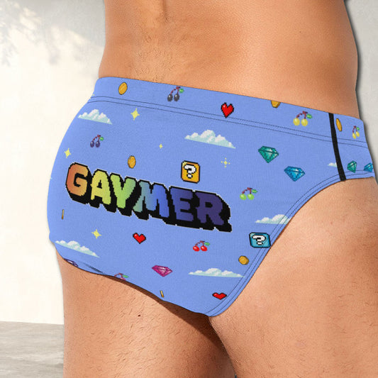 Gaymer Pride Men's Briefs With Retro Video Game Pixel Art Pattern