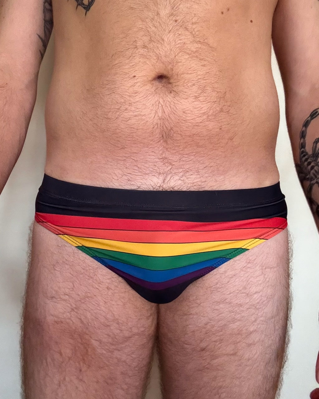 These Gay Pride Rainbow Swim Briefs are made with a soft, breathable blend of polyester and spandex for a quick-drying fabric that provides maximum comfort and durability. The brief-style fit of our swimwear is designed to enhance your natural shape while providing superior lifting support for your butt and bulge. For best care, wash in cold water and hang or tumble dry on low heat.