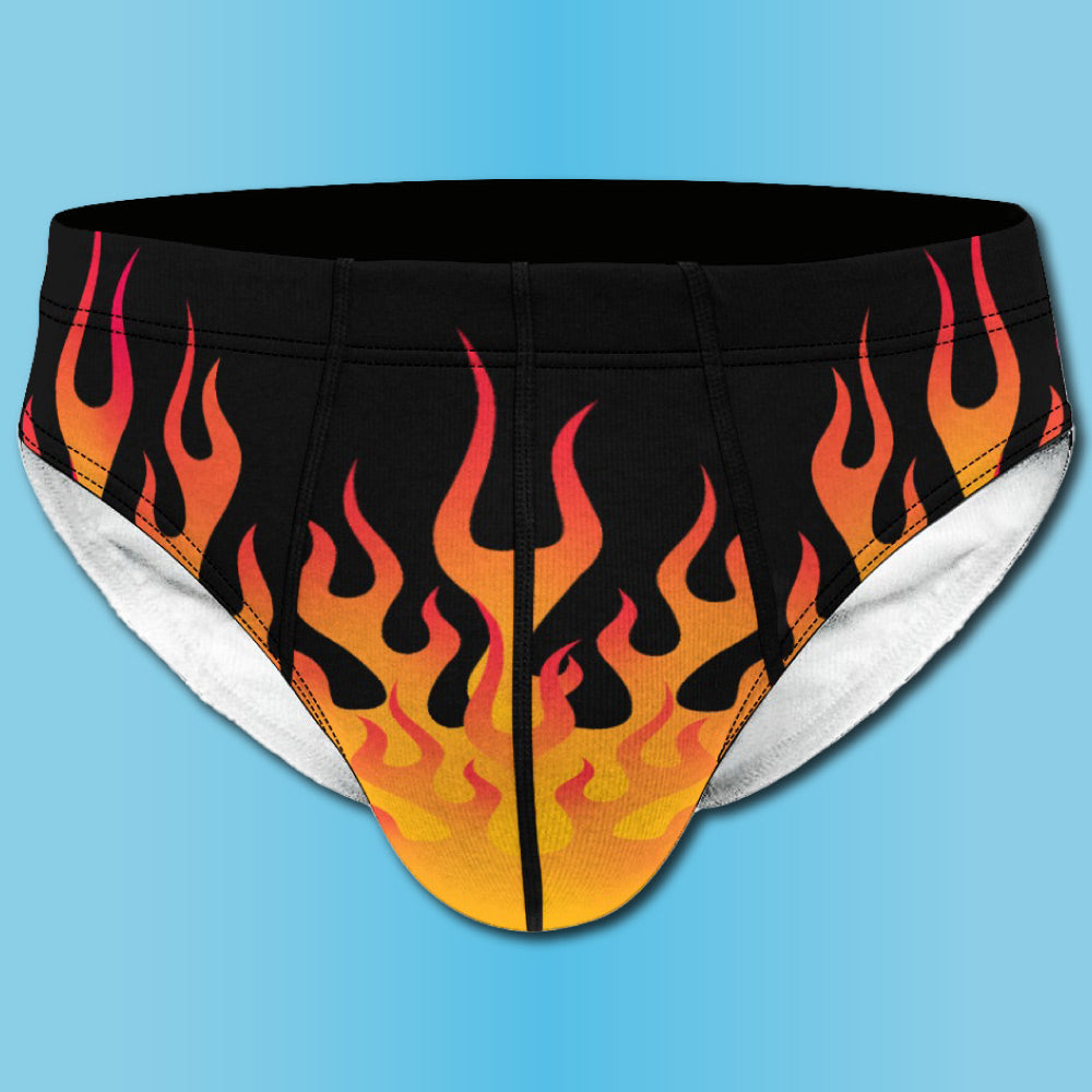 The Hot Rod Flame Men's Briefs feature a vibrant fire print pattern blazing from the bottom. The brief style fit of our underwear is designed to enhance your natural shape while providing superior lifting support for your butt and bulge.
